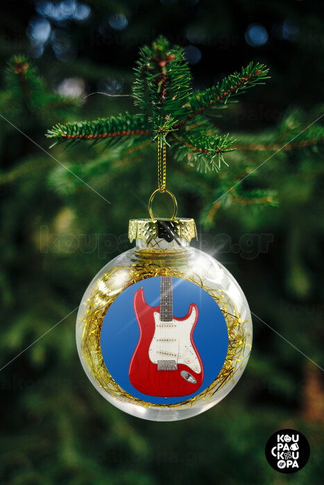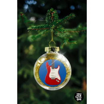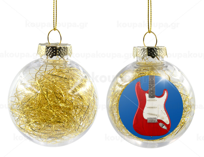 Guitar stratocaster, Στολίδι Χριστουγεννιάτικη μπάλα δένδρου διάφανη με χρυσό γέμισμα 8cm
