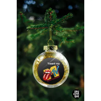 I want my MTV, Στολίδι Χριστουγεννιάτικη μπάλα δένδρου διάφανη με χρυσό γέμισμα 8cm