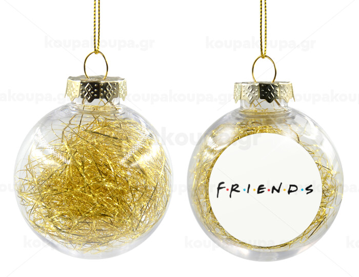 Friends, Στολίδι Χριστουγεννιάτικη μπάλα δένδρου διάφανη με χρυσό γέμισμα 8cm