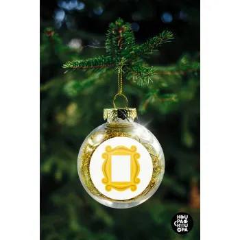 Friends frame, Στολίδι Χριστουγεννιάτικη μπάλα δένδρου διάφανη με χρυσό γέμισμα 8cm