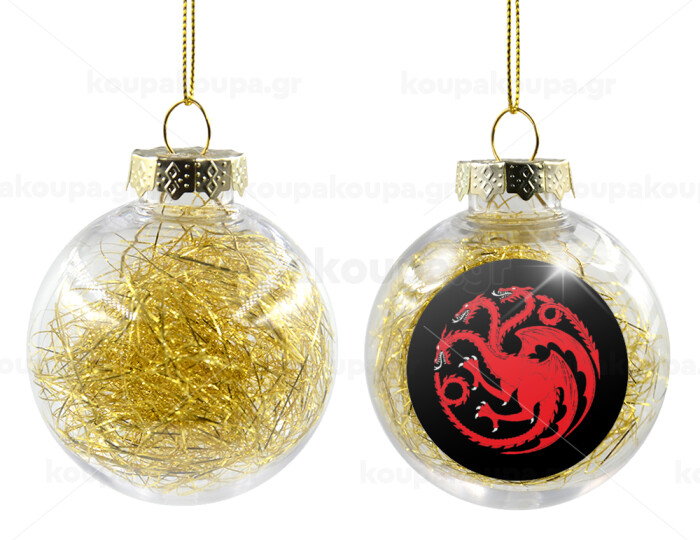 GOT House Targaryen, Fire Blood, Στολίδι Χριστουγεννιάτικη μπάλα δένδρου διάφανη με χρυσό γέμισμα 8cm