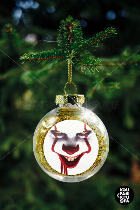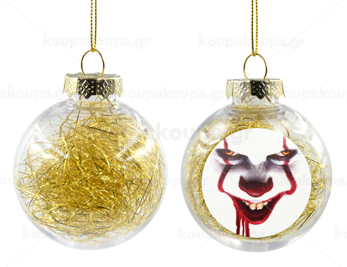 IT Pennywise, Στολίδι Χριστουγεννιάτικη μπάλα δένδρου διάφανη με χρυσό γέμισμα 8cm