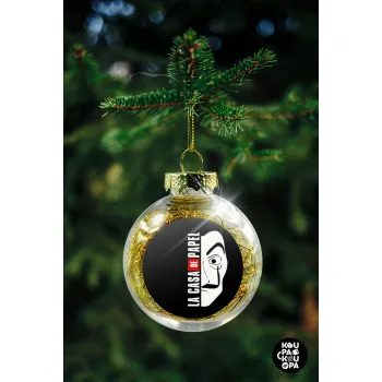 La casa de papel vertical, Στολίδι Χριστουγεννιάτικη μπάλα δένδρου διάφανη με χρυσό γέμισμα 8cm