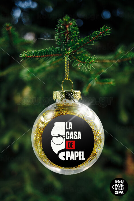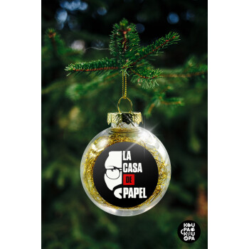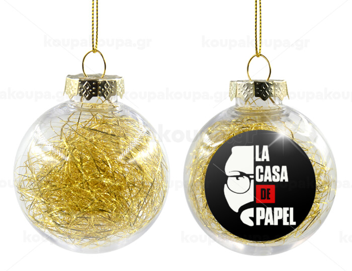 La casa de papel, Στολίδι Χριστουγεννιάτικη μπάλα δένδρου διάφανη με χρυσό γέμισμα 8cm