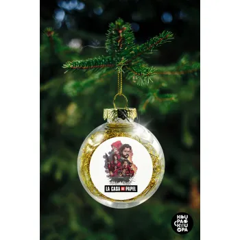 La casa de papel drawing cover, Στολίδι Χριστουγεννιάτικη μπάλα δένδρου διάφανη με χρυσό γέμισμα 8cm