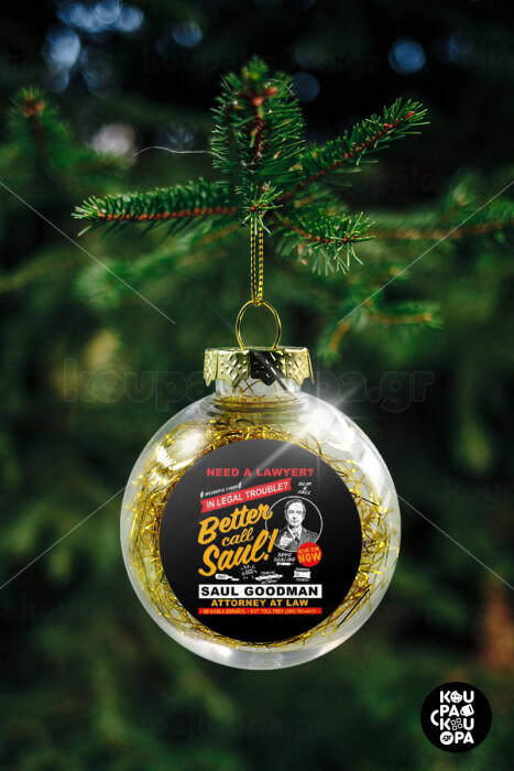 Need A Lawyer Then Call Saul Dks, Στολίδι Χριστουγεννιάτικη μπάλα δένδρου διάφανη με χρυσό γέμισμα 8cm