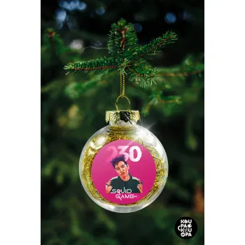 Squid game 2, Thanos 230, Στολίδι Χριστουγεννιάτικη μπάλα δένδρου διάφανη με χρυσό γέμισμα 8cm