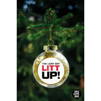Suits You Just Got Litt Up! , Στολίδι Χριστουγεννιάτικη μπάλα δένδρου διάφανη με χρυσό γέμισμα 8cm