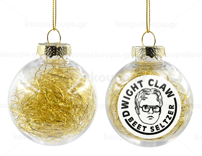 The office Dwight Claw (beet seltzer), Στολίδι Χριστουγεννιάτικη μπάλα δένδρου διάφανη με χρυσό γέμισμα 8cm
