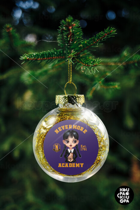 Wednesday Adams, nevermore, Στολίδι Χριστουγεννιάτικη μπάλα δένδρου διάφανη με χρυσό γέμισμα 8cm