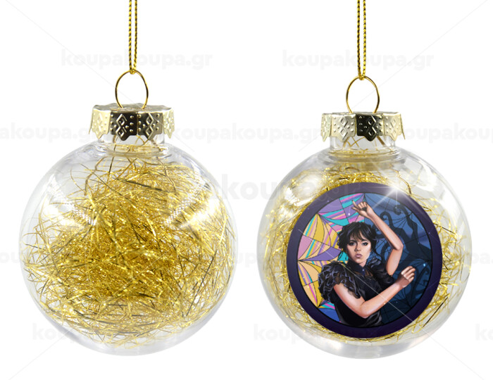 Wednesday dance, Στολίδι Χριστουγεννιάτικη μπάλα δένδρου διάφανη με χρυσό γέμισμα 8cm