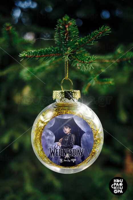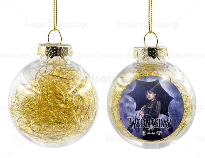 Wednesday rain, Στολίδι Χριστουγεννιάτικη μπάλα δένδρου διάφανη με χρυσό γέμισμα 8cm