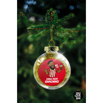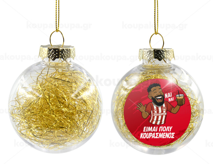 Ροντινέι, "ΠΟΛΥ ΚΟΥΡΑΣΜΕΝΟΣ", Στολίδι Χριστουγεννιάτικη μπάλα δένδρου διάφανη με χρυσό γέμισμα 8cm