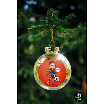 Lionel Messi drawing, Στολίδι Χριστουγεννιάτικη μπάλα δένδρου διάφανη με χρυσό γέμισμα 8cm