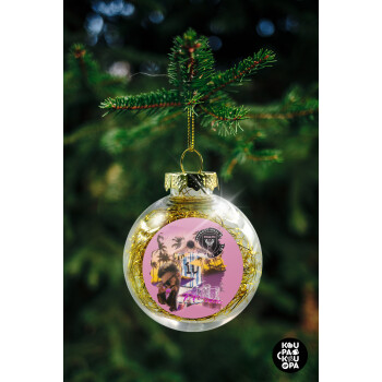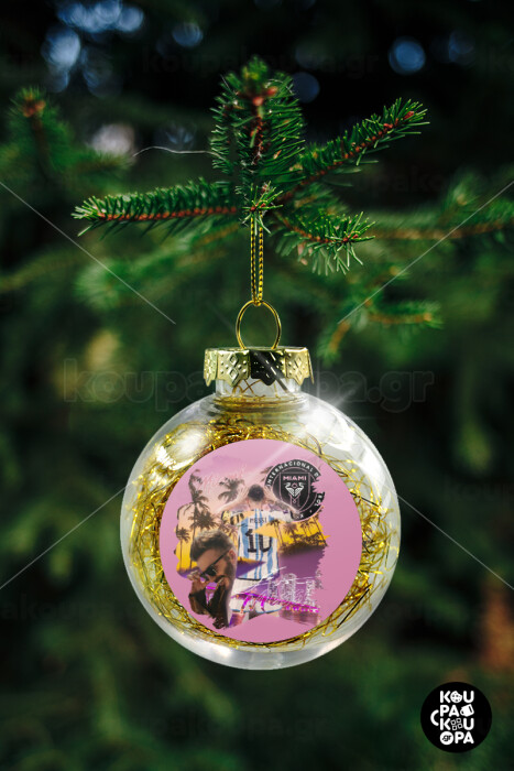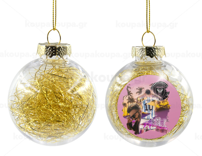 Lionel Messi Miami, Στολίδι Χριστουγεννιάτικη μπάλα δένδρου διάφανη με χρυσό γέμισμα 8cm