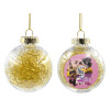 Χριστουγεννιάτικο διακοσμητικό στολίδι διάφανο με μεταλιζέ angel hair εσωτερικά σε μέγεθος 8cm, ελαφρύ σε μέγεθος για να μην κρεμάει το κλαδάκι, με κορδόνι στήριξης για τα κλαδάκια.
