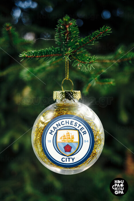 Manchester City FC , Στολίδι Χριστουγεννιάτικη μπάλα δένδρου διάφανη με χρυσό γέμισμα 8cm