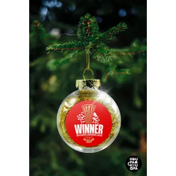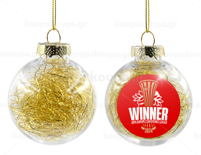 Europa Conference League WINNER, Στολίδι Χριστουγεννιάτικη μπάλα δένδρου διάφανη με χρυσό γέμισμα 8cm