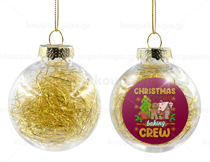 Christmas Cookie Baking Crew, Στολίδι Χριστουγεννιάτικη μπάλα δένδρου διάφανη με χρυσό γέμισμα 8cm