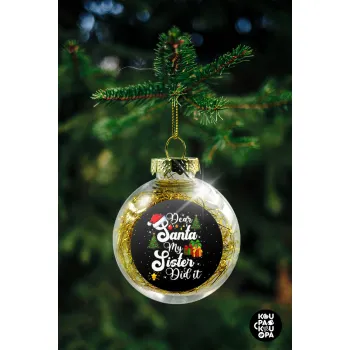 Dear santa my Sister Did it, Στολίδι Χριστουγεννιάτικη μπάλα δένδρου διάφανη με χρυσό γέμισμα 8cm