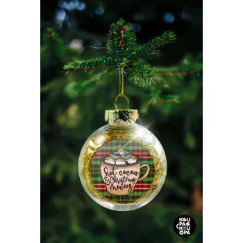 Hot Cocoa And Christmas Movies, Στολίδι Χριστουγεννιάτικη μπάλα δένδρου διάφανη με χρυσό γέμισμα 8cm