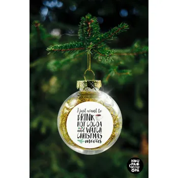 I just want to drink hot cocoa and watch christmas movies, Στολίδι Χριστουγεννιάτικη μπάλα δένδρου διάφανη με χρυσό γέμισμα 8cm