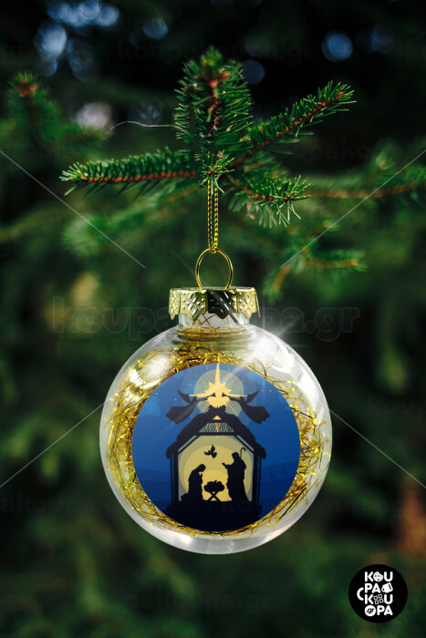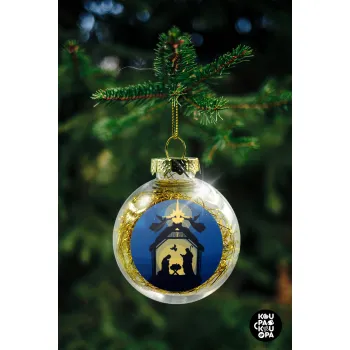 Η γέννηση του Ιησού φάτνη, Στολίδι Χριστουγεννιάτικη μπάλα δένδρου διάφανη με χρυσό γέμισμα 8cm