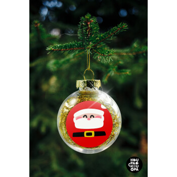 Simple Santa, Στολίδι Χριστουγεννιάτικη μπάλα δένδρου διάφανη με χρυσό γέμισμα 8cm