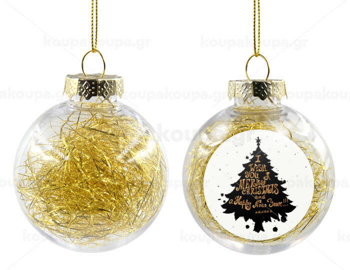 Tree, i wish you a merry christmas and a Happy New Year!!! xoxoxo, Στολίδι Χριστουγεννιάτικη μπάλα δένδρου διάφανη με χρυσό γέμισμα 8cm