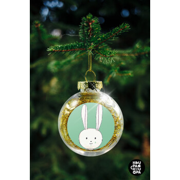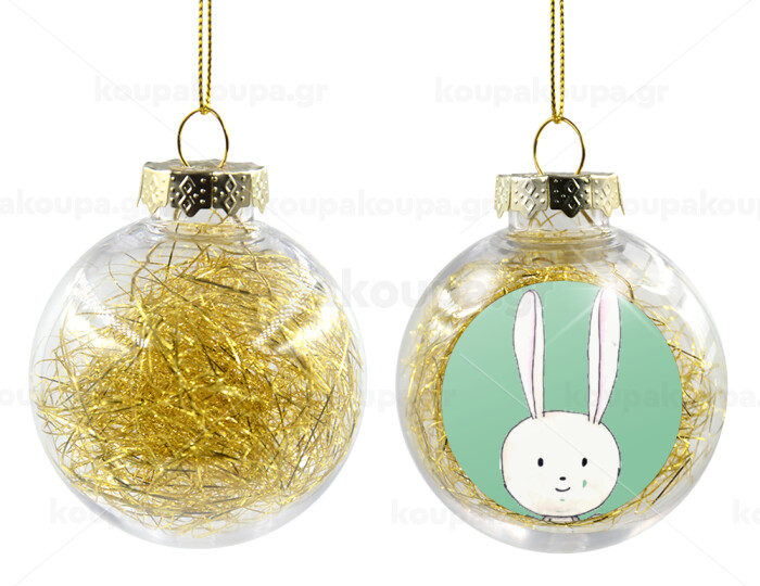 Ο λαγός του πάσχα, Στολίδι Χριστουγεννιάτικη μπάλα δένδρου διάφανη με χρυσό γέμισμα 8cm