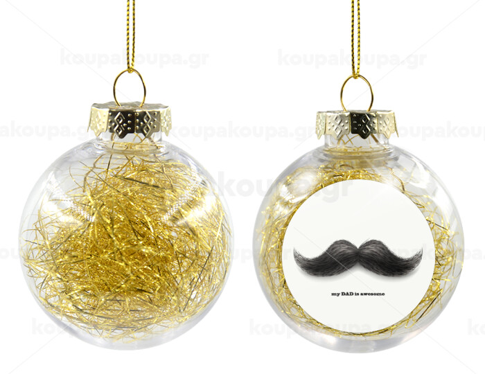Ο καλύτερος μουστακαλής του κόσμου!!!, Στολίδι Χριστουγεννιάτικη μπάλα δένδρου διάφανη με χρυσό γέμισμα 8cm