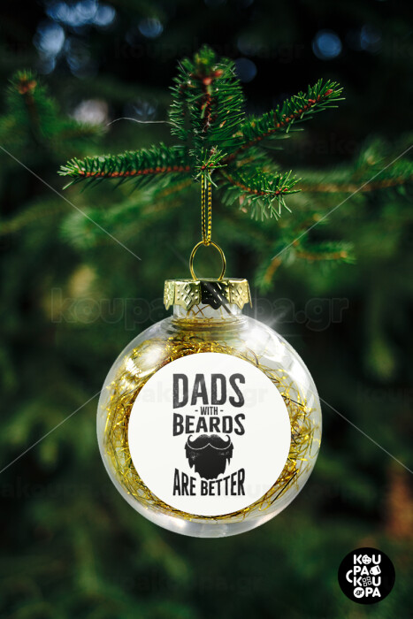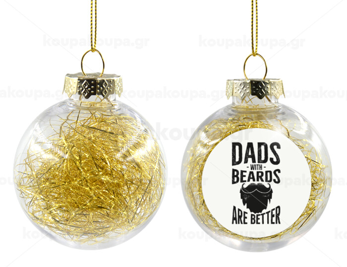 Dad's with beards are better, Στολίδι Χριστουγεννιάτικη μπάλα δένδρου διάφανη με χρυσό γέμισμα 8cm