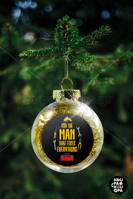 For the man that fixes everything!, Στολίδι Χριστουγεννιάτικη μπάλα δένδρου διάφανη με χρυσό γέμισμα 8cm
