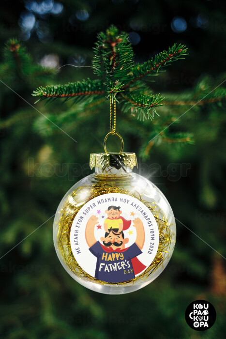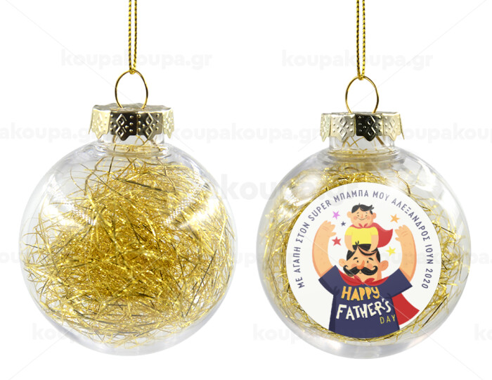 Happy Fathers Day με όνομα, Στολίδι Χριστουγεννιάτικη μπάλα δένδρου διάφανη με χρυσό γέμισμα 8cm