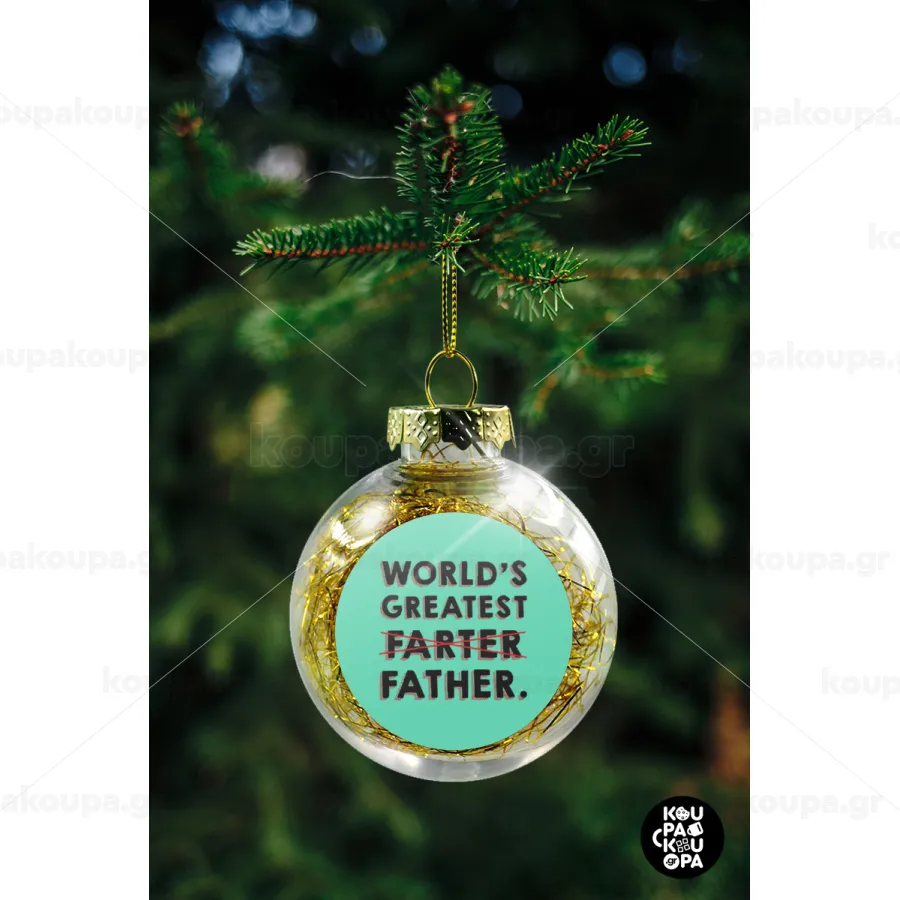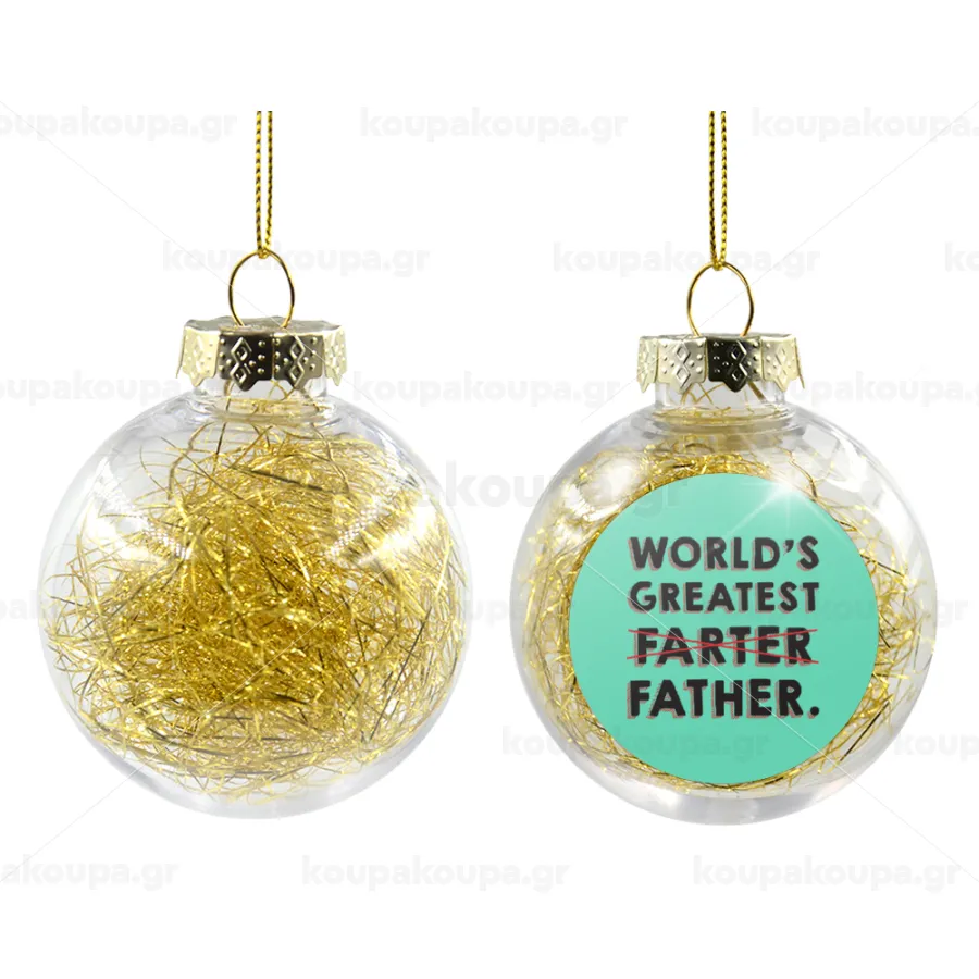 World's greatest farter, Στολίδι Χριστουγεννιάτικη μπάλα δένδρου διάφανη με χρυσό γέμισμα 8cm