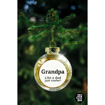 Grandpa, like a dad, just cooler, Στολίδι Χριστουγεννιάτικη μπάλα δένδρου διάφανη με χρυσό γέμισμα 8cm