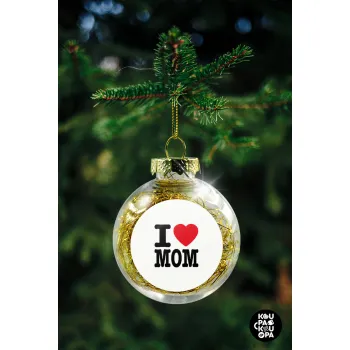 I LOVE MOM, Στολίδι Χριστουγεννιάτικη μπάλα δένδρου διάφανη με χρυσό γέμισμα 8cm