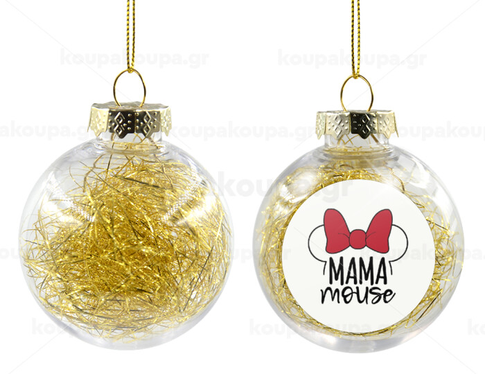MAMA mouse, Στολίδι Χριστουγεννιάτικη μπάλα δένδρου διάφανη με χρυσό γέμισμα 8cm