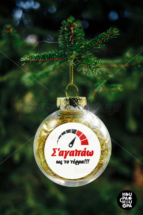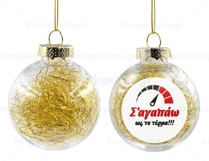 Σ΄ αγαπώ ως το τέρμα!!!, Στολίδι Χριστουγεννιάτικη μπάλα δένδρου διάφανη με χρυσό γέμισμα 8cm