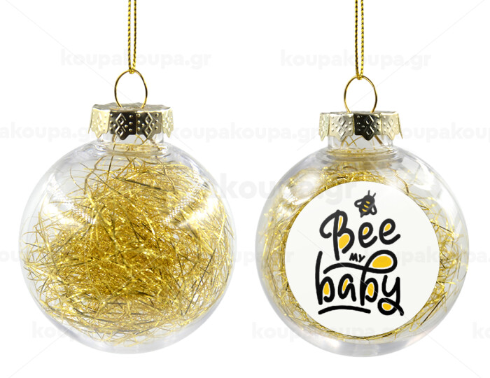 Bee my BABY!!!, Στολίδι Χριστουγεννιάτικη μπάλα δένδρου διάφανη με χρυσό γέμισμα 8cm