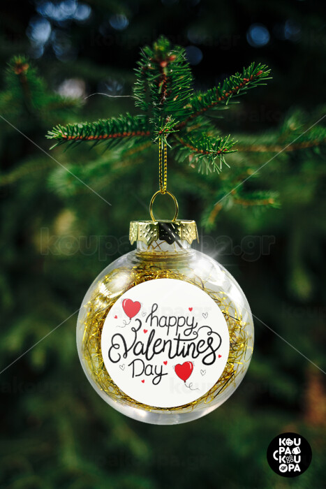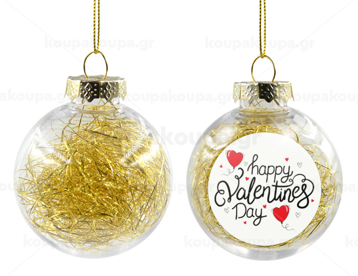 Happy Valentines Day!!!, Στολίδι Χριστουγεννιάτικη μπάλα δένδρου διάφανη με χρυσό γέμισμα 8cm