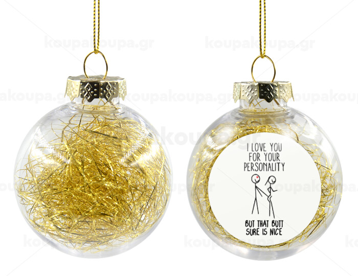 I Love you for your personality, Στολίδι Χριστουγεννιάτικη μπάλα δένδρου διάφανη με χρυσό γέμισμα 8cm