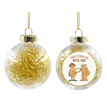 I want to grow old with you, Στολίδι Χριστουγεννιάτικη μπάλα δένδρου διάφανη με χρυσό γέμισμα 8cm