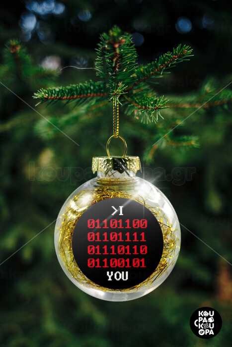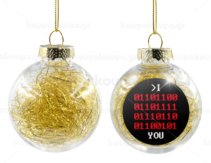 I .... YOU, binary secret MSG, Στολίδι Χριστουγεννιάτικη μπάλα δένδρου διάφανη με χρυσό γέμισμα 8cm