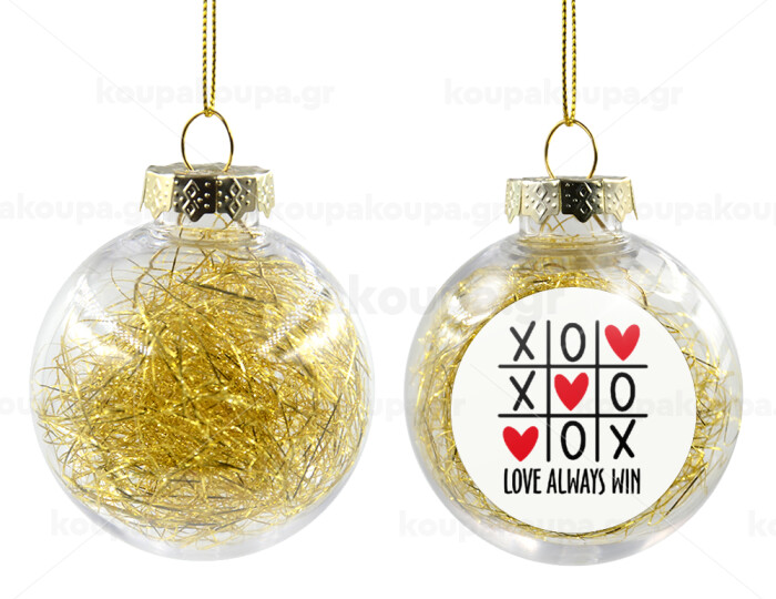 Love always win, Στολίδι Χριστουγεννιάτικη μπάλα δένδρου διάφανη με χρυσό γέμισμα 8cm