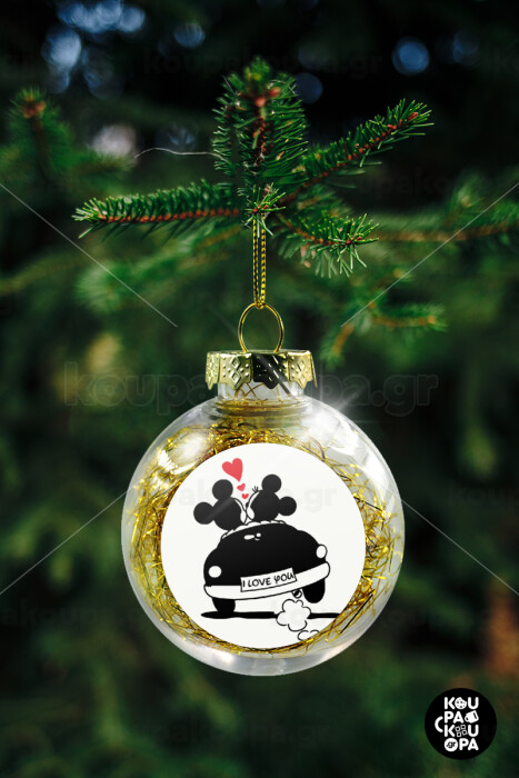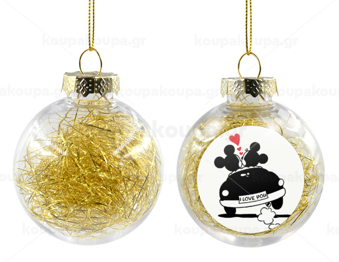 Love Car, Στολίδι Χριστουγεννιάτικη μπάλα δένδρου διάφανη με χρυσό γέμισμα 8cm