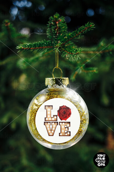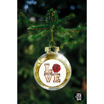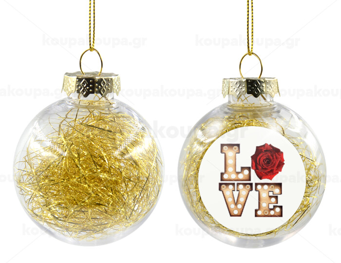 Love lights and roses, Στολίδι Χριστουγεννιάτικη μπάλα δένδρου διάφανη με χρυσό γέμισμα 8cm
