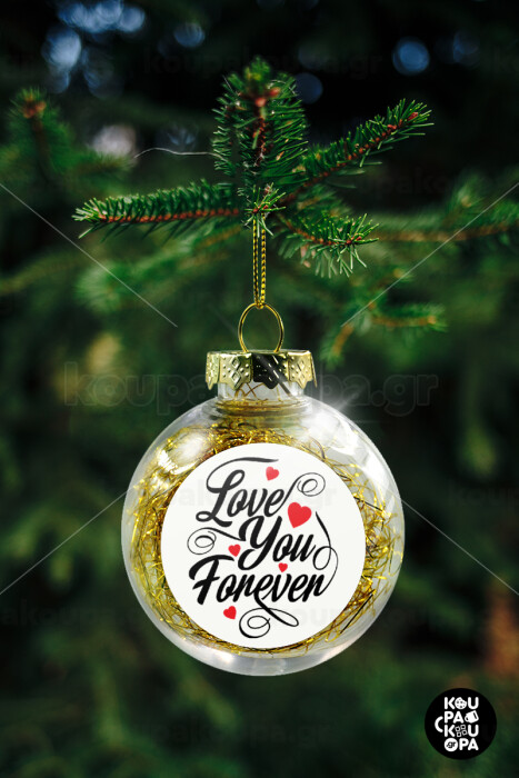 Love you forever, Στολίδι Χριστουγεννιάτικη μπάλα δένδρου διάφανη με χρυσό γέμισμα 8cm