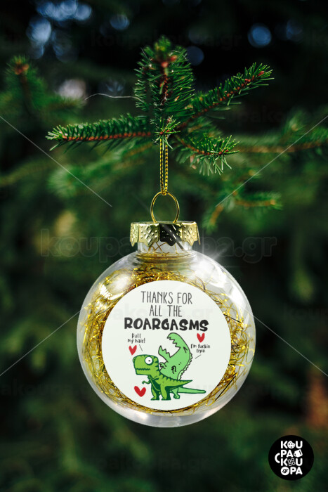 Thanks for all the ROARGASMS, Στολίδι Χριστουγεννιάτικη μπάλα δένδρου διάφανη με χρυσό γέμισμα 8cm
