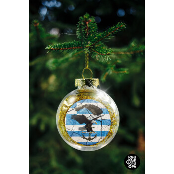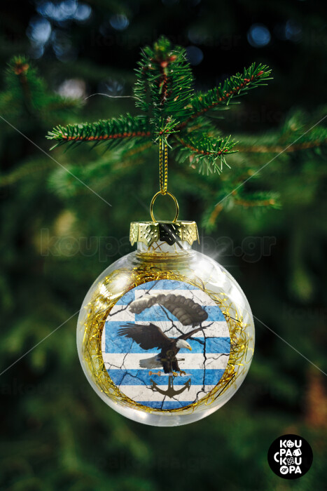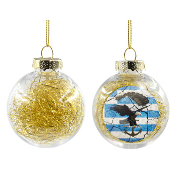 Hellas army αετός, Στολίδι Χριστουγεννιάτικη μπάλα δένδρου διάφανη με χρυσό γέμισμα 8cm